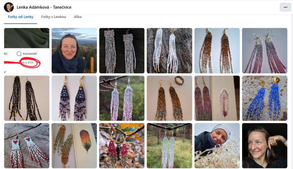 Lenka Adámková – tvoří náušnice z korálků, které jsou lehké jako pírko a příjemně se pohupují v uších.